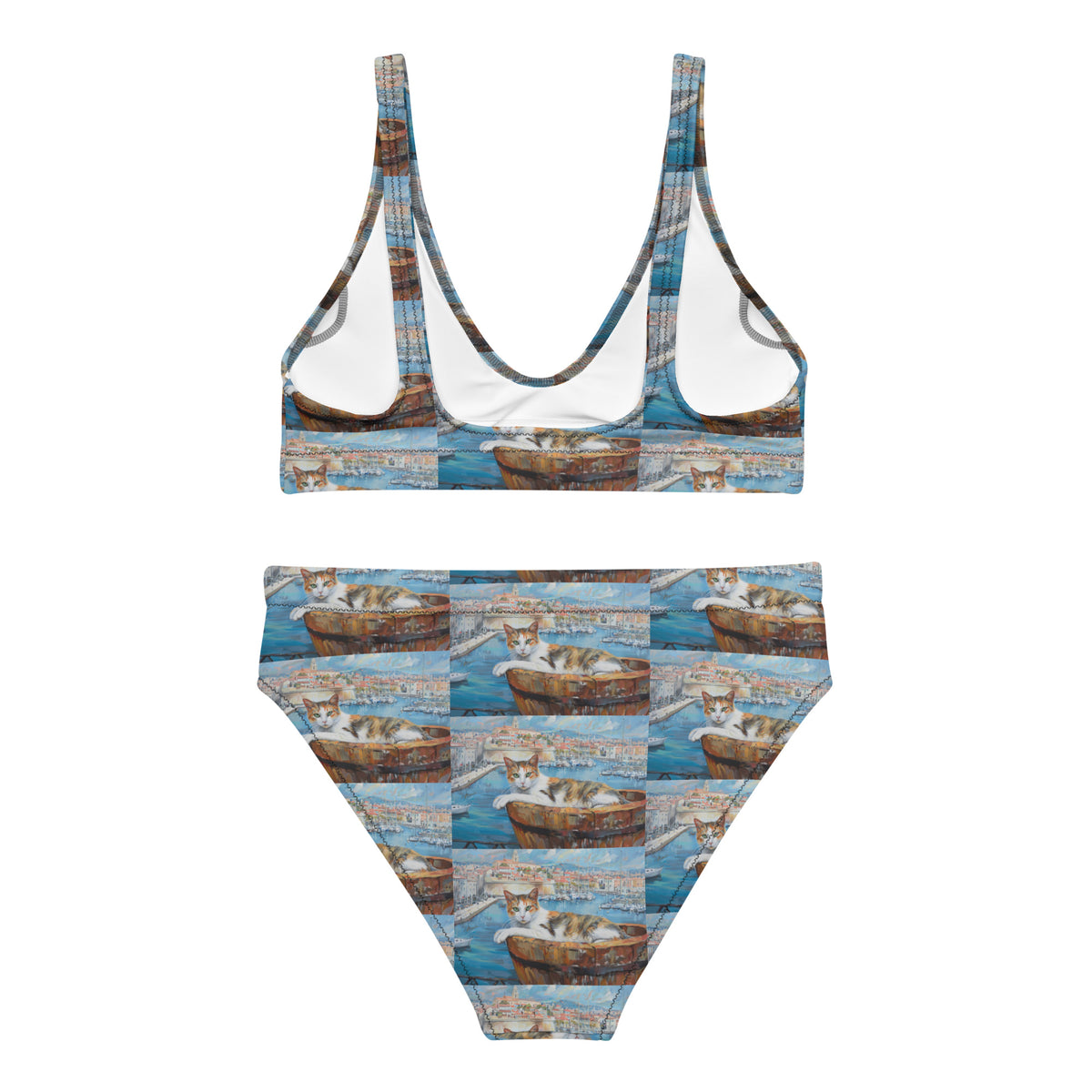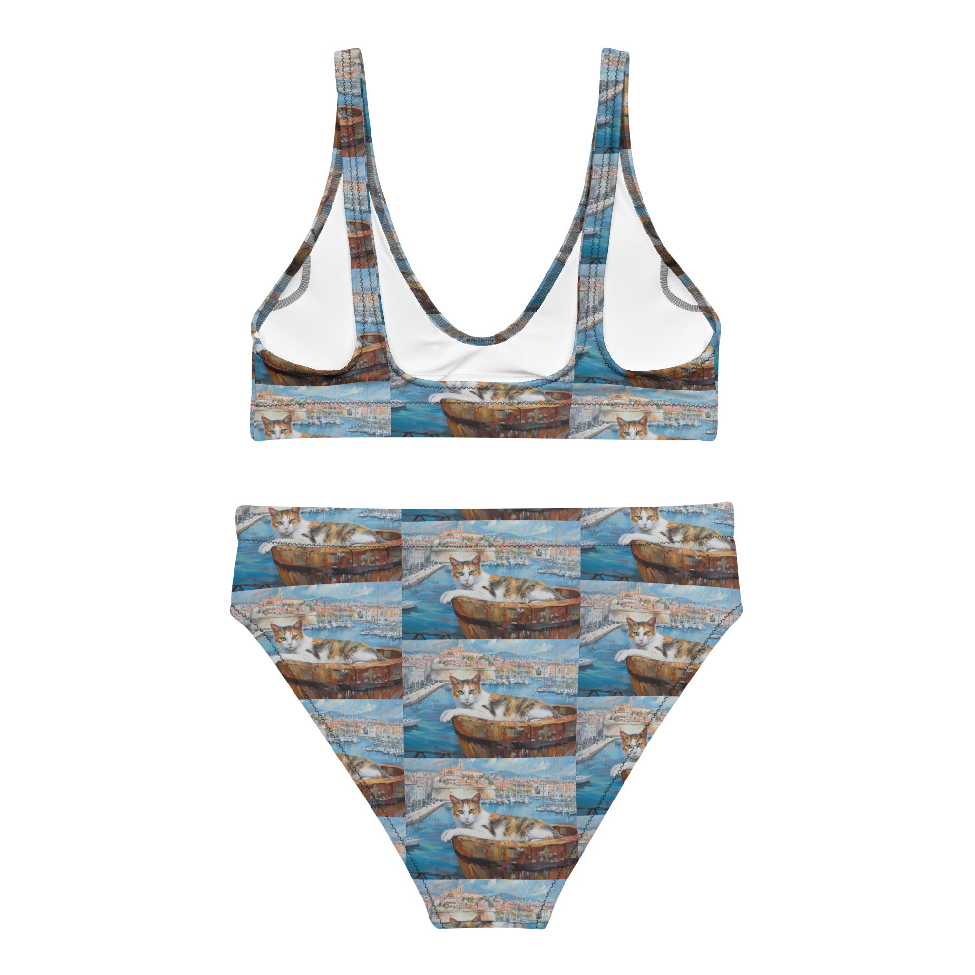 Bikini ecosostenibile a vita alta con stampa all over