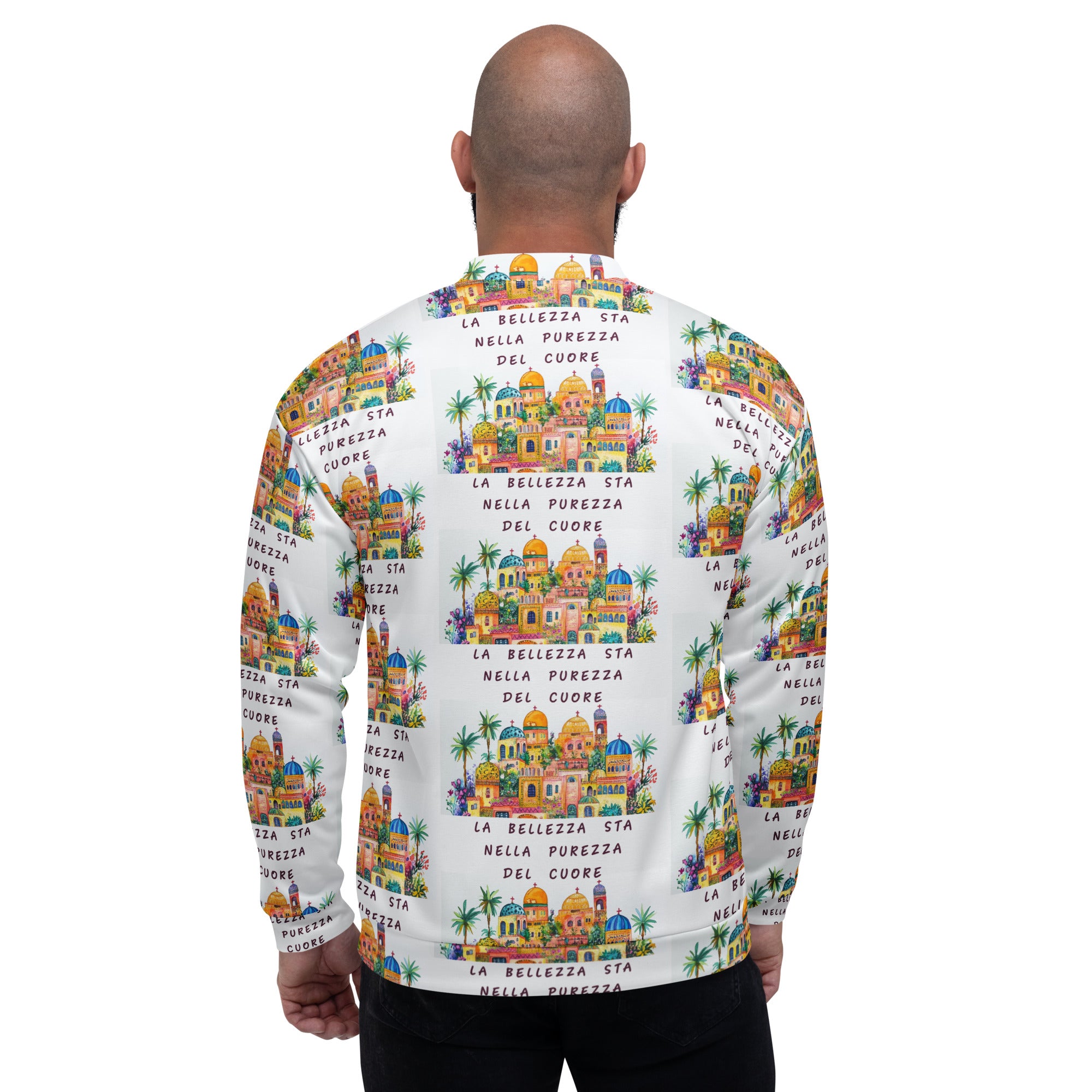 Aggiungi un po' di brio al tuo guardaroba con questa vibrante giacca bomber con stampa all-over. Indossala su una semplice maglietta o sopra una calda felpa con cappuccio: in entrambi i casi starà benissimo. Con la felpa spazzolata all'interno e una vestibilità unisex rilassata, questa giacca bomber va a ruba, quindi affrettati ad acquistare la tua!