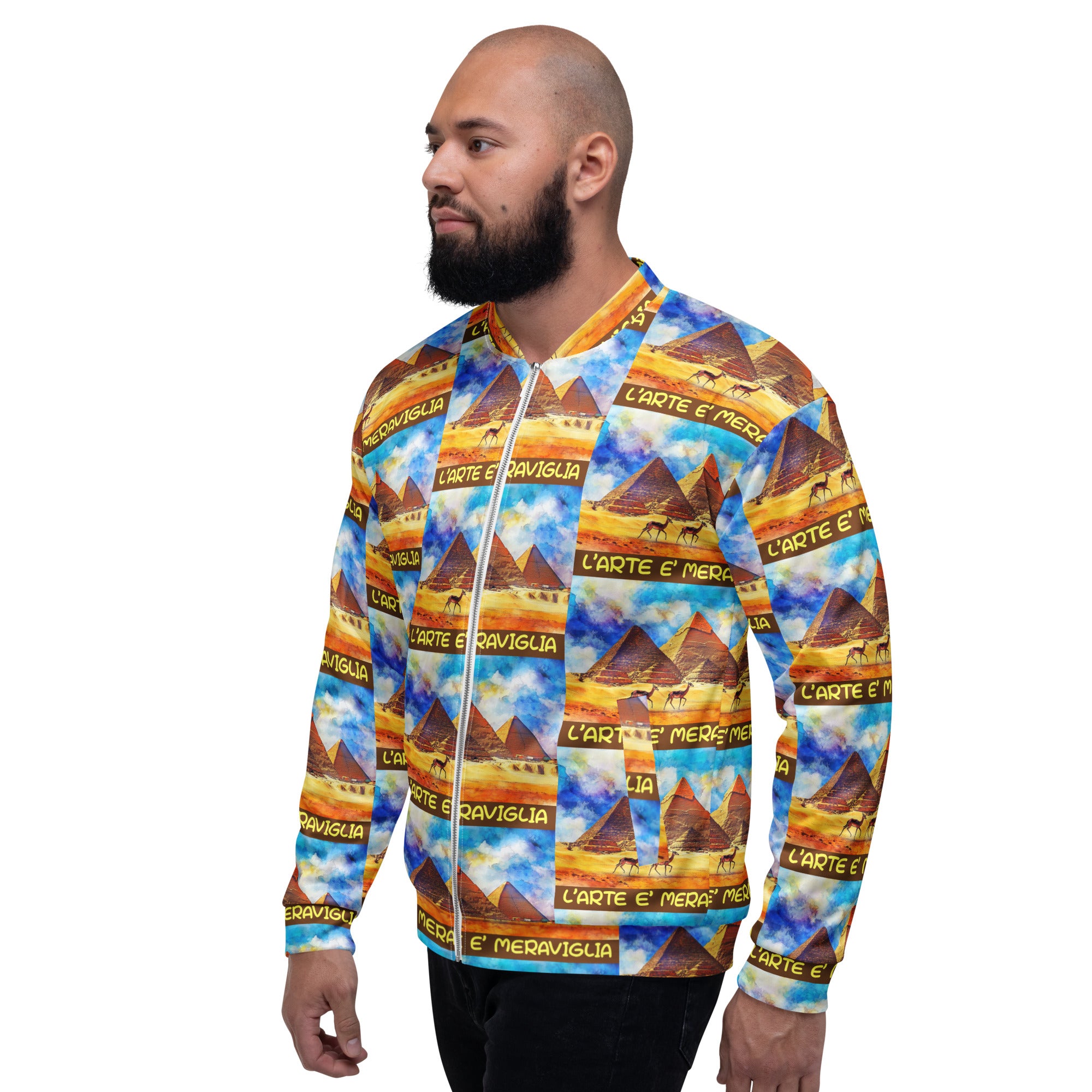 Aggiungi un po' di brio al tuo guardaroba con questa vibrante giacca bomber con stampa all-over. Indossala su una semplice maglietta o sopra una calda felpa con cappuccio: in entrambi i casi starà benissimo. Con la felpa spazzolata all'interno e una vestibilità unisex rilassata, questa giacca bomber va a ruba, quindi affrettati ad acquistare la tua!